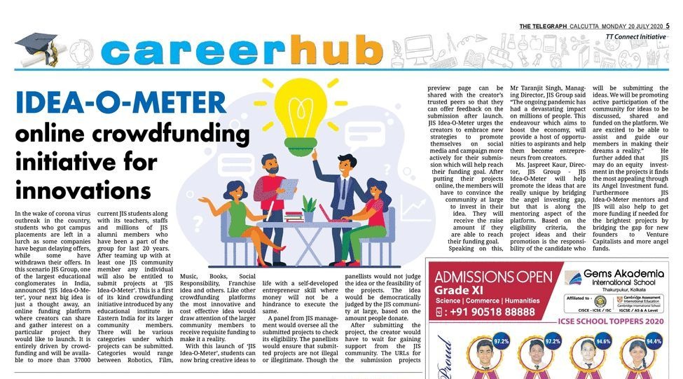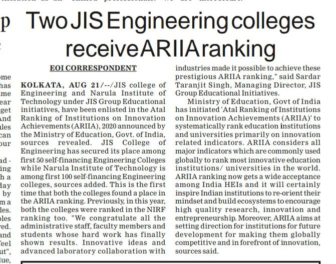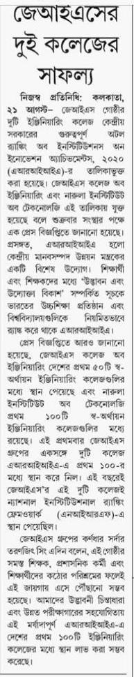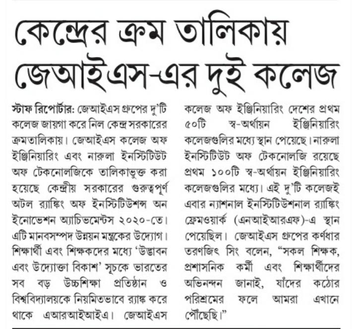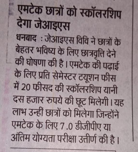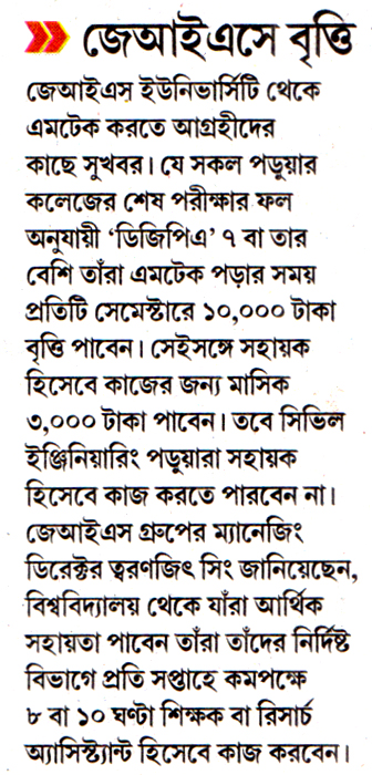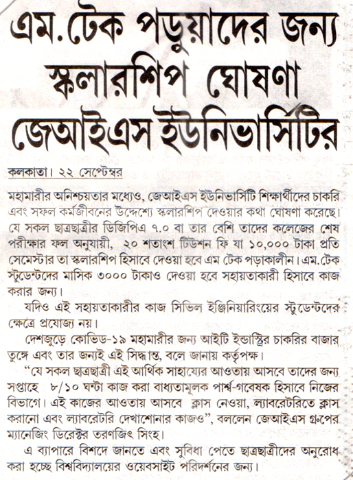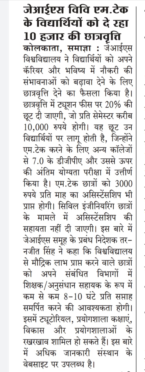 JIS Group will provide a scholarship of Rs. 10K for the students of M.Tech